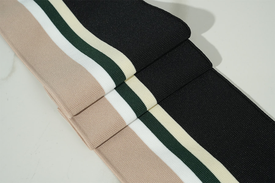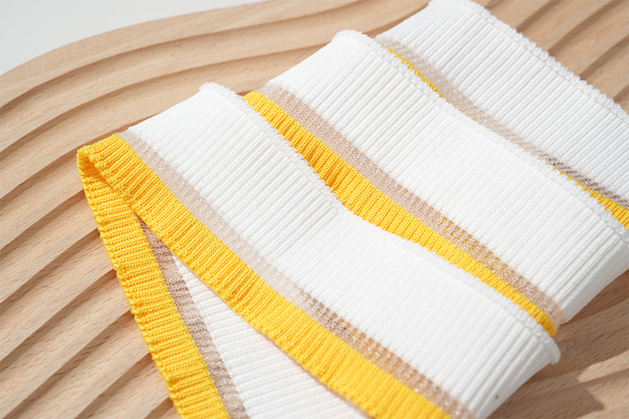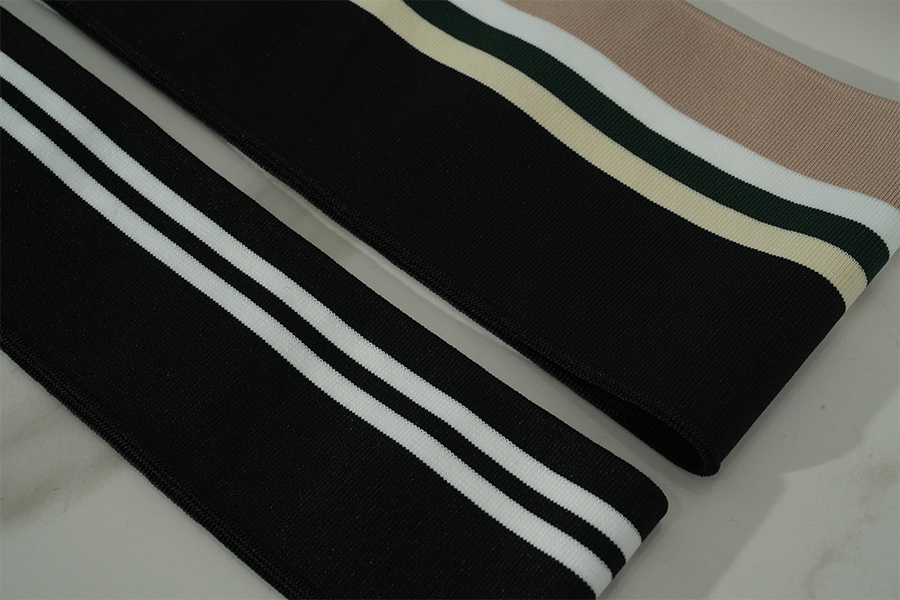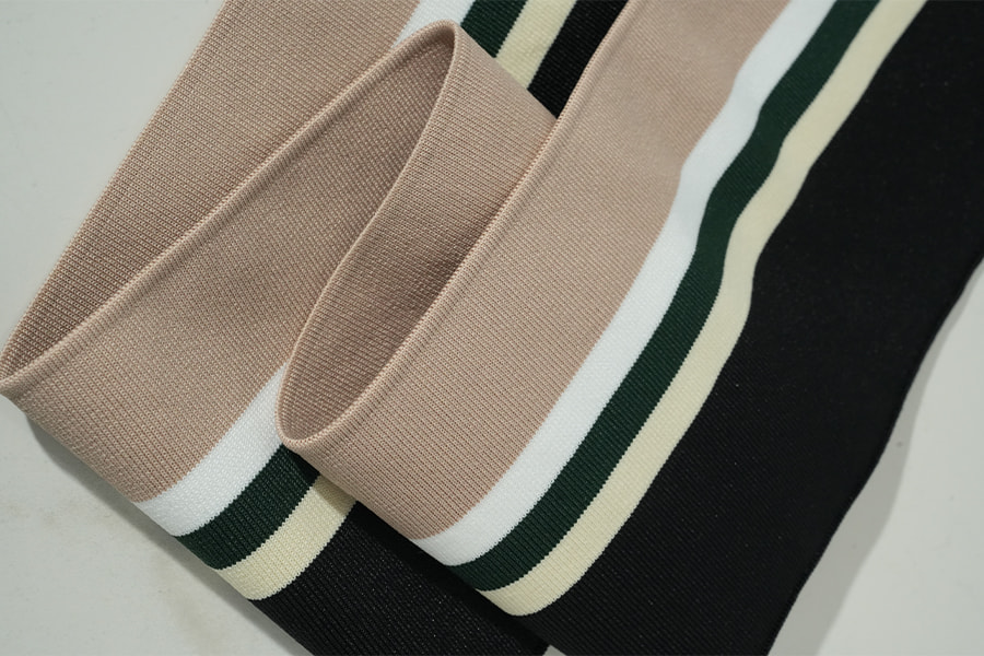 2. Cniotálfaidh Rib poileistir : Marvel Nua-Aimseartha I gcodarsnacht leis an allure timeless na fabraice easnacha cadáis, seasann chniotáil rib poileistir iontach comhaimseartha na hinnealtóireachta teicstíle, arb iad is sainairíonna a athléimneacht, feidhmíocht, agus solúbthacht. Comhdhéanta de shnáithíní poileistear sintéiseacha, tá uigeacht iomaireach ar leith ag baint leis an bhfabraic chniotála seo a chuireann i gcuimhne dá macasamhail cadáis, cé go bhfuil neart agus marthanacht feabhsaithe aige. Léiríonn cniotáil rib poileistir an pósadh stíl agus feidhmiúlacht, ag freastal ar éilimh stíleanna maireachtála nua-aimseartha le héifeachtacht gan sárú.