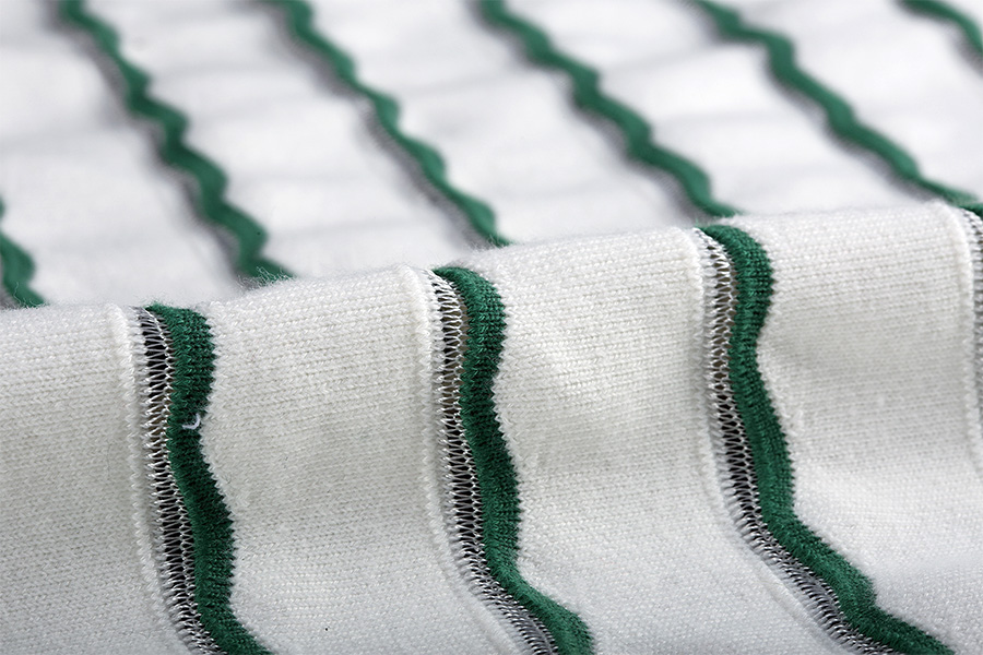 Buntáistí: Is é ceann de na buntáistí is suntasaí a bhaineann le fabraic rib cadáis ná a breathability eisceachtúla. Ligeann na snáithíní nádúrtha aer a scaipeadh go saor tríd an bhfabraic, rud a éascaíonn aeráil is fearr agus bainistíocht taise. Mar thoradh air sin, bíonn fionnuaracht úrnua ag caitheamh aimsire, fiú amháin i gcoinníollacha te agus tais, rud a fhágann go bhfuil fabraic easnacha cadáis ina rogha d'fheisteas samhraidh agus d'éadaí gníomhacha. Ina theannta sin, mar gheall ar airíonna hypoallergenic fabraice easnacha cadáis tá sé bog ar an gcraiceann, rud a laghdaíonn an baol greannú nó míchompord, go háirithe do dhaoine aonair a bhfuil craiceann íogair nó ailléirgí orthu.