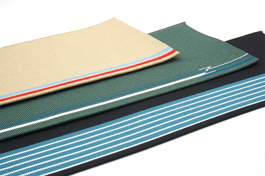 Áirítear ar phríomhtháirgí na cuideachta dhá chatagóir: rib cniotála cothrománach, a úsáidtear go forleathan i gcuacha, cosa bríste, waist, hems, agus seams rata; agus cineálacha éagsúla rib jacquard ard-chaighdeán, a bhfuil bail ar fónamh orthu ag custaiméirí mar gheall ar a patrúin fíorálainn agus cáilíocht den scoth.